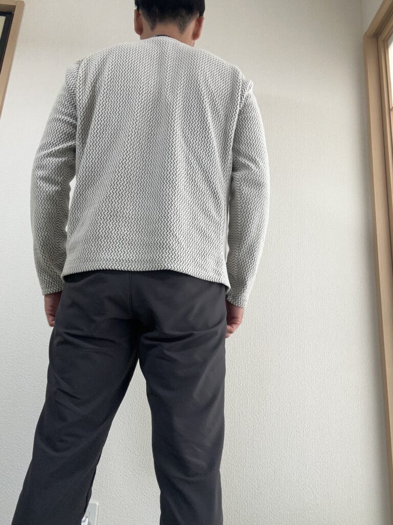 生地の内側は以下の写真左側(袖を捲った状態)です。ソフトな肌触りがめちゃくちゃ気持ちよいです!